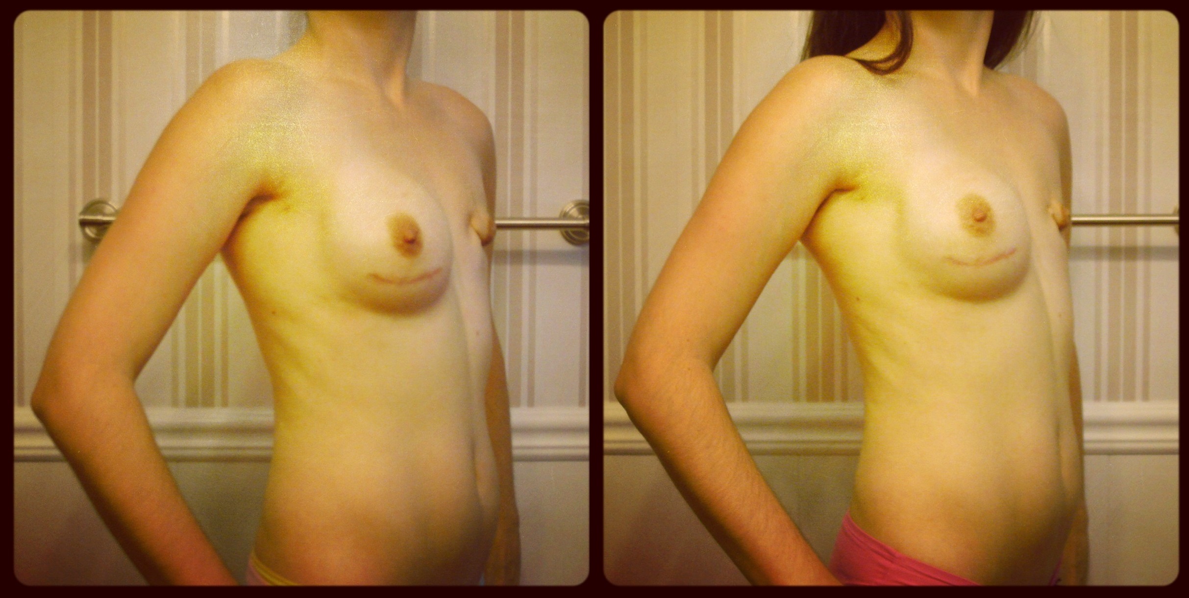 We arrived at the hospital at 6:30am for the 8:30am procedure. It was a beautiful morning! The surgery lasted three and a half hours – longer than we expected. I woke up bundled up in a tight compression bra and ACE bandage wrapped about my chest. The biggest and most wonderful surprise: NO DRAINS!!! I couldn’t believe it. Spent a bit in the recovery room and then hightailed it home to my comfy bed.