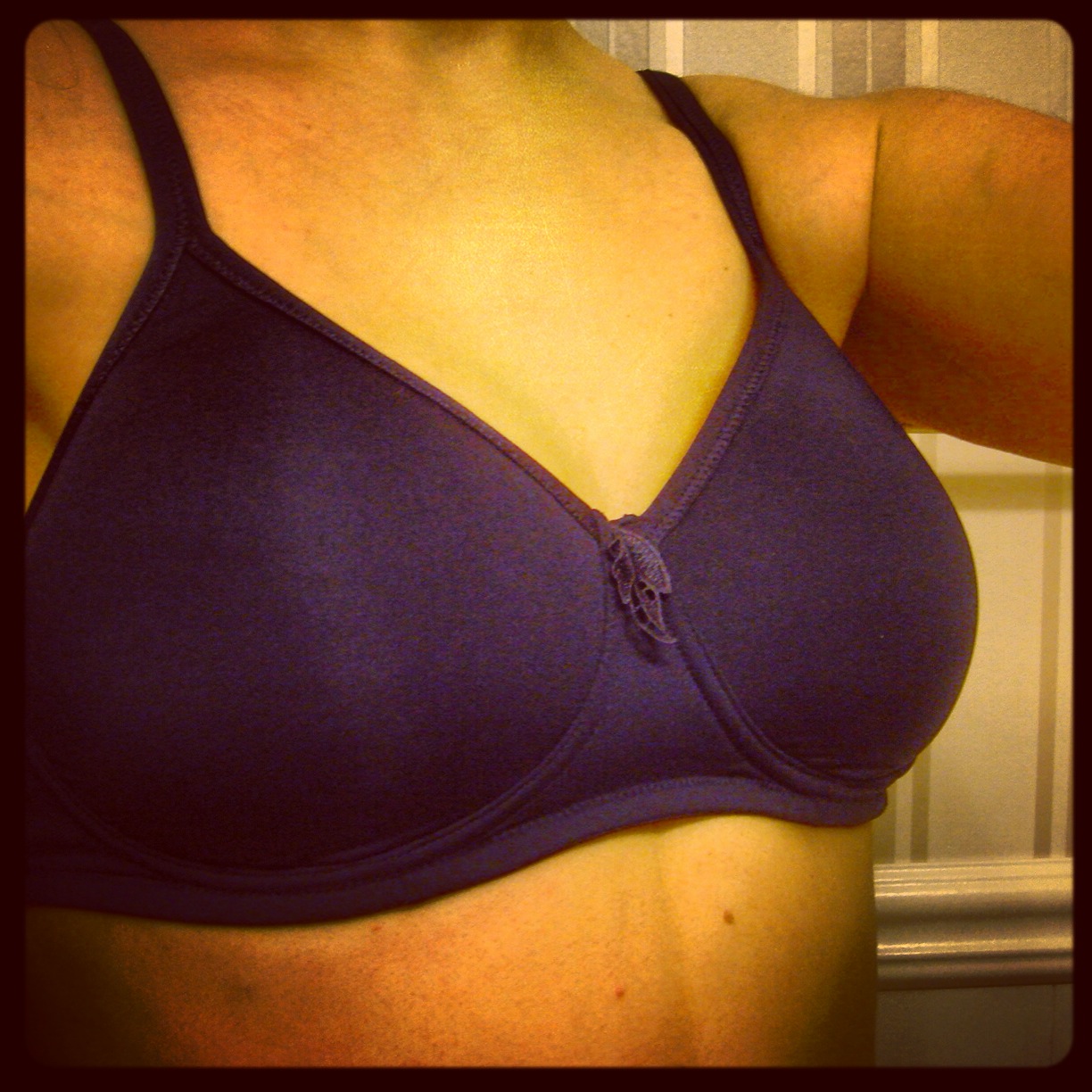 I dug up the name and number a friend shared with me shortly after my removal surgery for a local boutique that specializes in the needs of breast cancer survivors and individuals in need of image consulting. We scheduled a fitting and I obtained the necessary referral from my plastic surgeon. It took a couple of visits and an overnight shipment for us to get the piece just right, but we did it. Here it is, my new friend. Can you tell? The prosthesis is on the right side of the photo. It looks great in the pocketed bra and even better in clothing! I won’t fool the TSA agent reading the images produced by that airport body scanner thing, but I’m confident that I won’t be fielding and attempting to answer uniboob-related questions in Spanish. Yo no hablo mucho español.